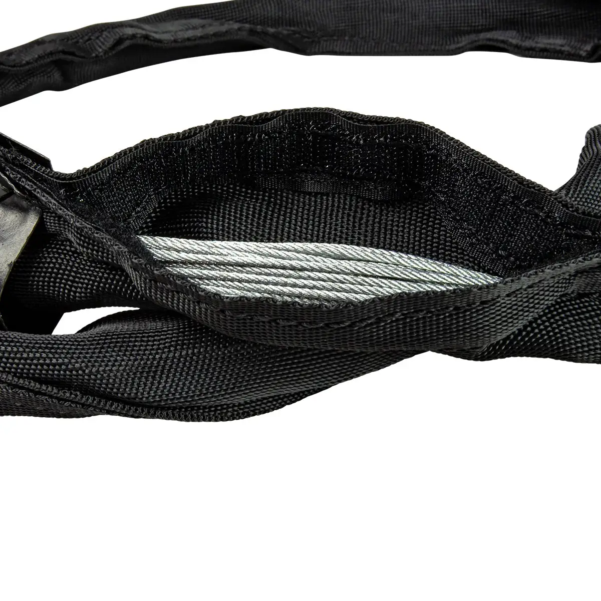 These lightweight round slings are ideal for easy and inconspicuous suspension of stage sound and lighting equipment. Black sleeve material helps the sling blend into its surroundings. The load bearing member of our Steel-Tex round sling is made of galvanised steel aircraft cable wound in an endless configuration. The wire core is encased in a heavy black polyester cover. A unique inspection window with a velcro closure is located beside the capacity tag. This wide window allows for easy inspection of the core for broken wires or corrosion.