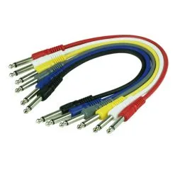 Titan AV 0.3m 1/4″ Mono Jack Guitar Patch Lead, Multi Colour Pack Of 6