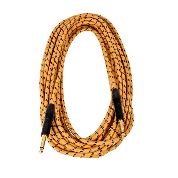 This Titan AV professional braided guitar cable is great quality, perfect for use with all electric guitars, bass guitars, E-piano and keyboards. This guitar lead uses the popular and well proven TAV X-SR2P gold plated 1/4″ jacks to provide perfect contact integrity. This pro series cable has also been wrapped in a heavy duty braided material for added strength and protection, the braided cable wrap also helps eliminate tangling of the cable. Our TAV cables use high end custom connectors, helical shielded cable & a tough PVC outer jacket to insure superior performance and reliability.