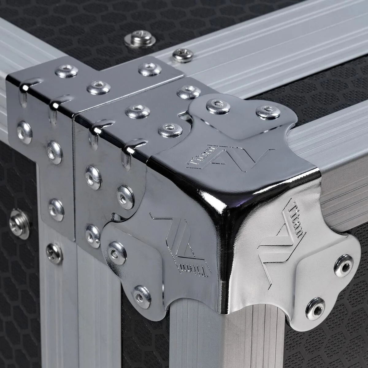 The latest range of Titan AV Road cases all feature a Hexagonal laminate finish, the unique design is visually attractive and promotes better durability, anti-slip and scratch resistance (In comparison to tradition road case laminates).