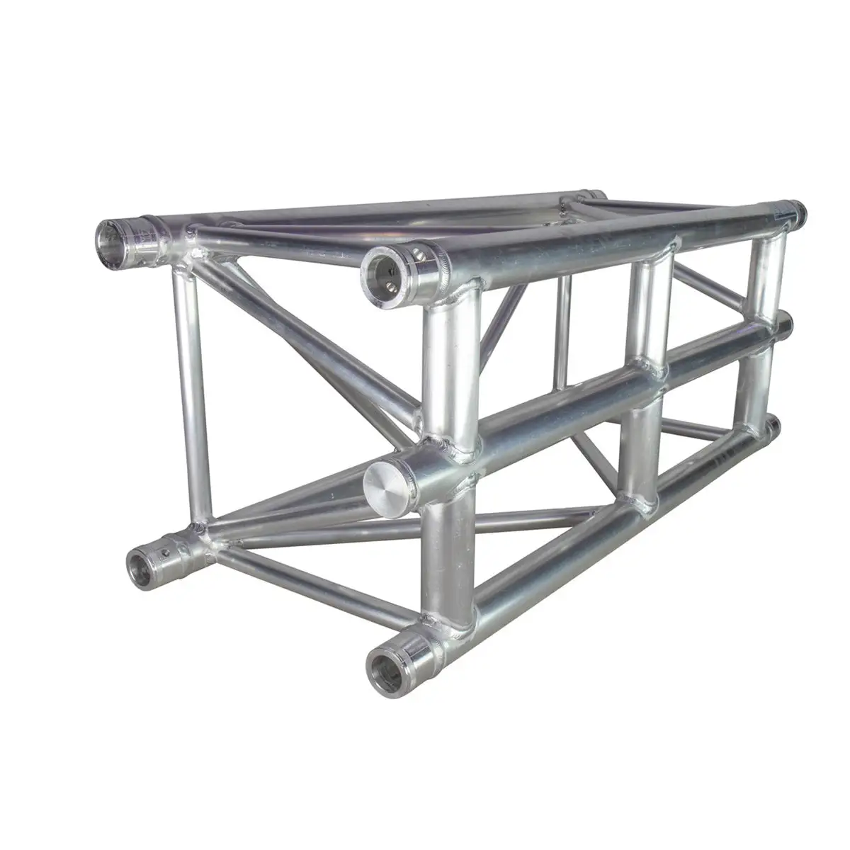5 chord 400mm Box trussing can be installed with the 5th chord facing up or down providing the versatility of not only a standard 400 box truss, but with the 5th Chord acting as a centre or balanced hang point for any of your entertainment and media devices such as LED screens, display panels, signage, or curtains.