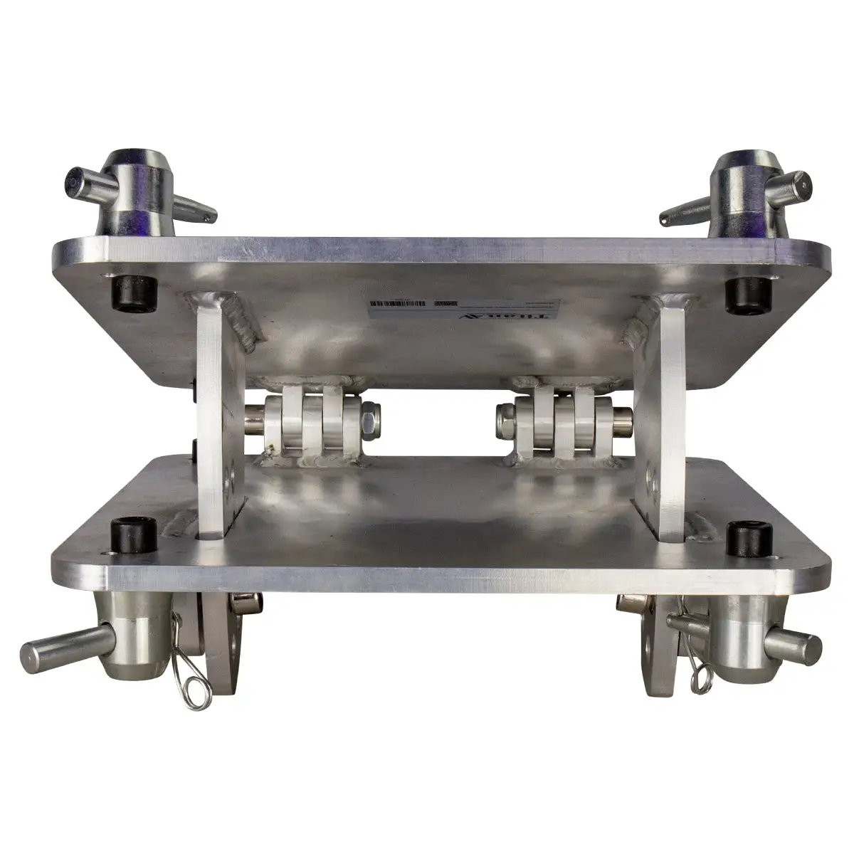 Titan AV 290 inline adjustable hinge junction has to be our most versatile truss junction yet, the Variable Hinged Junction is designed with functionality and aesthetics in mind. The minimal profile perfectly blends into any truss structure while the pre-positioned holes on adjustment blades allow for angles up to 22 degrees. Modifying the angle on your variable hinge is as easy as undoing a pair of high tensile bolts and re-positioning them toincremental angles for a new setup.