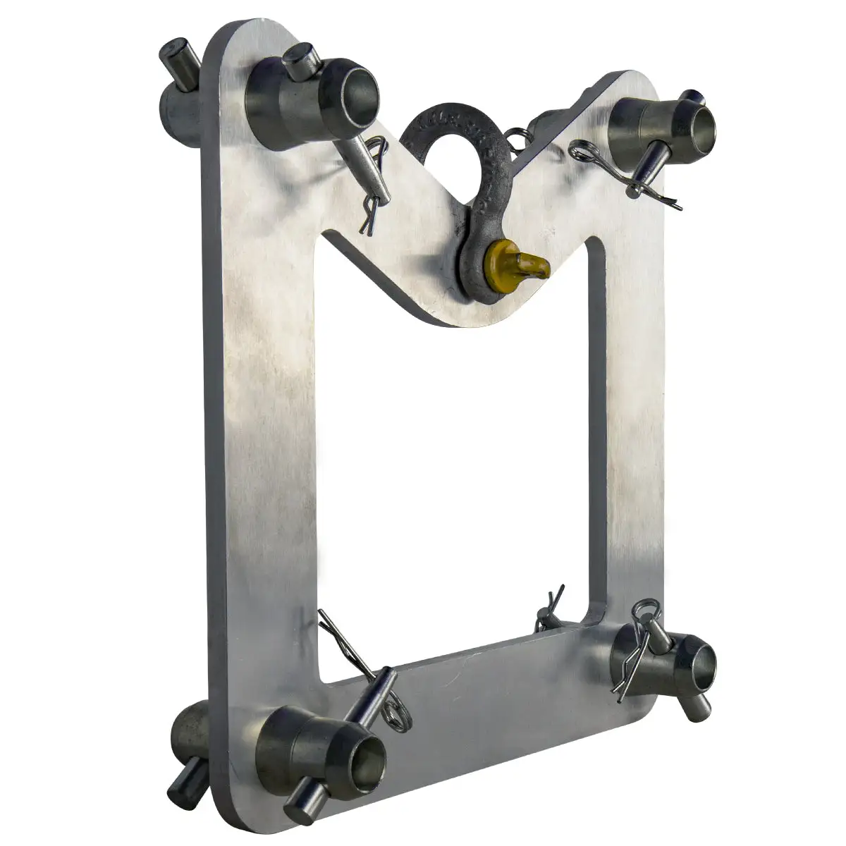 Titan AV 290 inline lifing bracket, also know as a truss end plate suspension bracket. Supplied with bow-shackle, Half spigots, pins and clips.