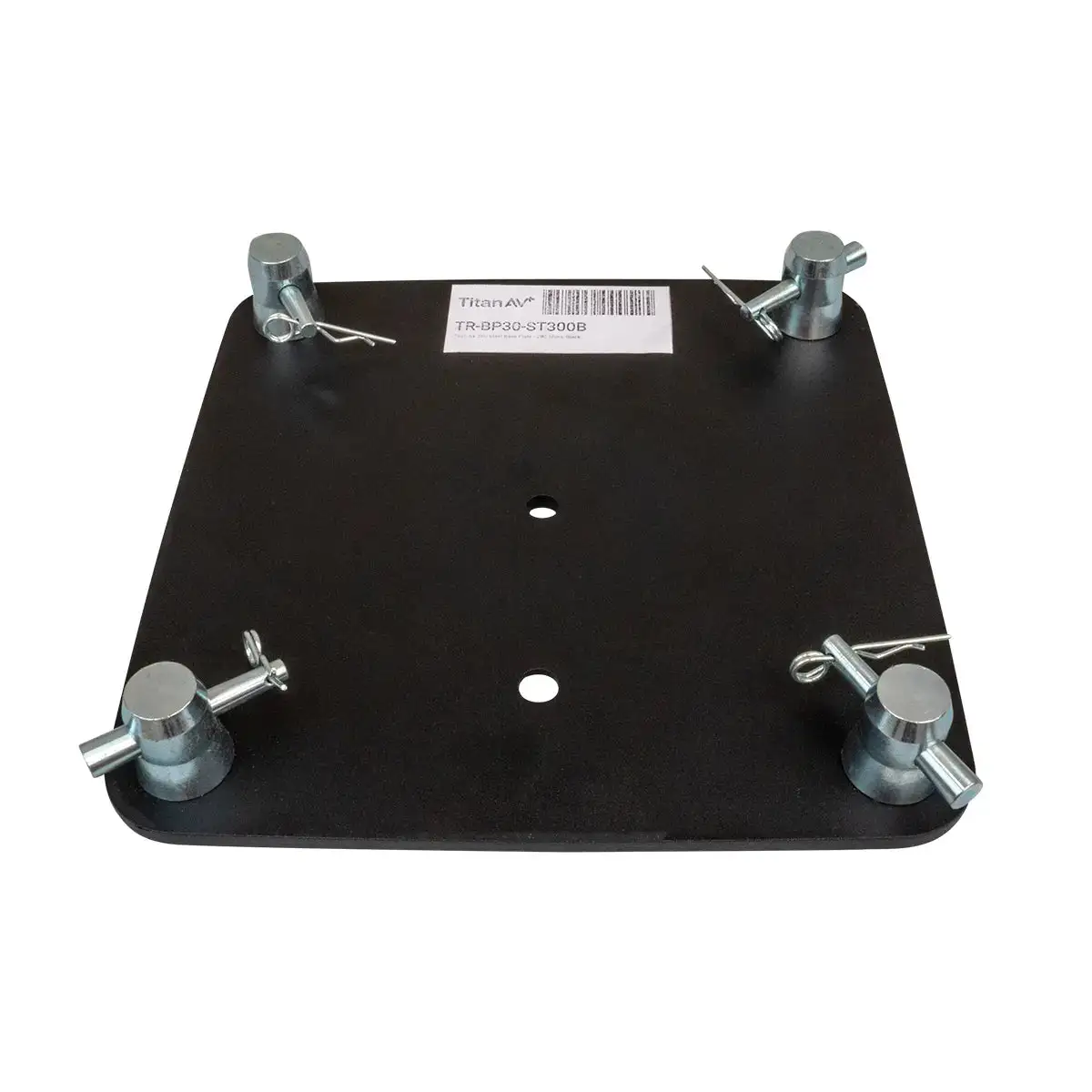 The latest range of TAV base/top plates will work with both 290mm Tri truss and Box truss, the plates will also suit Global truss and most other brands of 290mm trussing systems. Supplied with spigots and assembled, perfectly suited for use with truss systems, arch ways, stage production, TV stands, lighting towers, LED screen frames and custom shop fit outs. Great for stage, DJ, Band, Lighting applications, Pubs, Clubs, Churches, Schools, Shop displays and exhibitions.