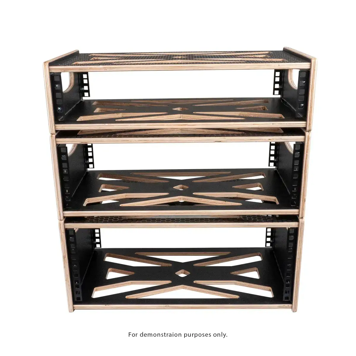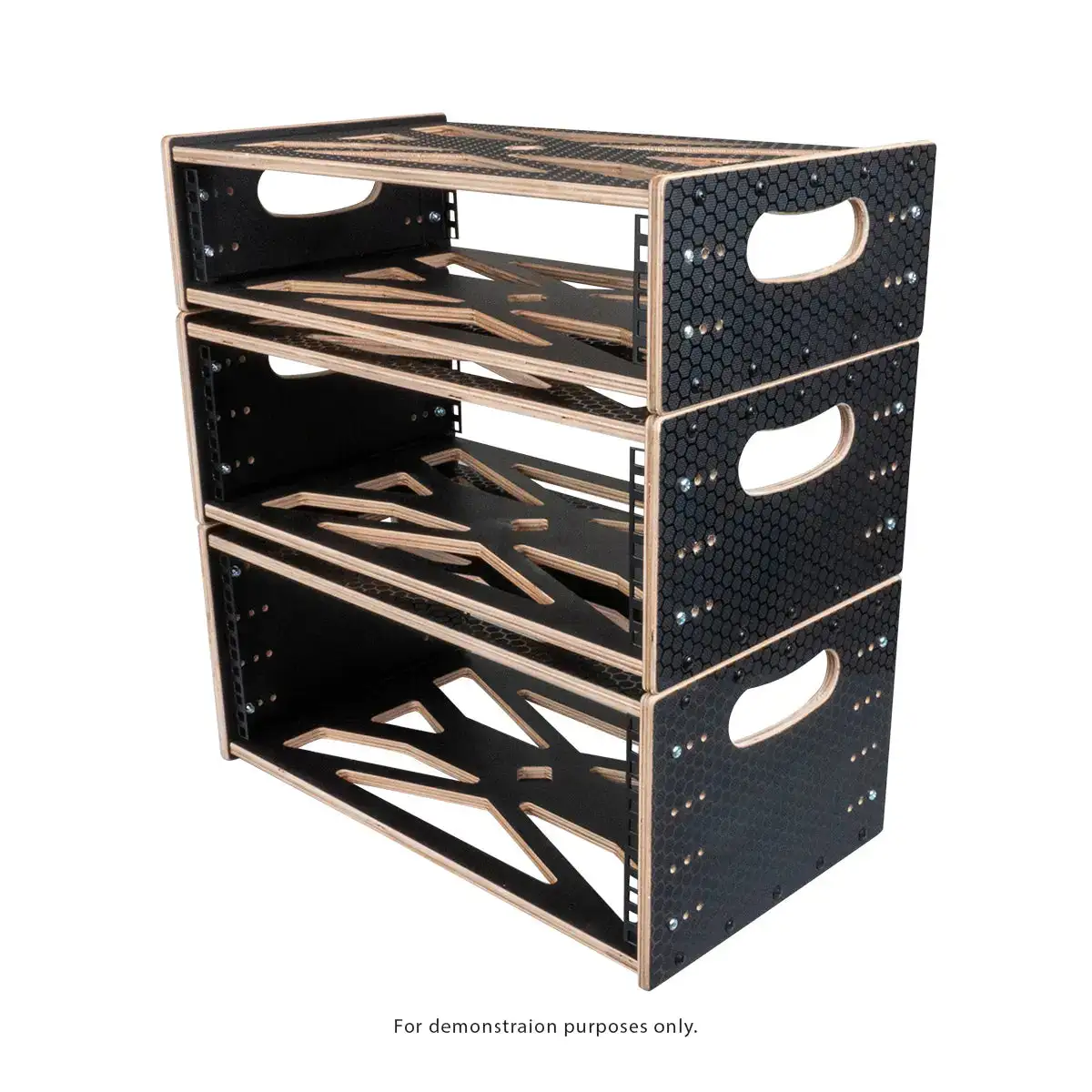 The Titan AV FLYRACK is designed and manufactured in Australia to be lightweight yet sturdy. Perfect for DJs, musicians and sound engineers who need their equipment portable and protected. Constructed from 9mm hexa pattern plywood which makes it light, coming in at 2.8kg.