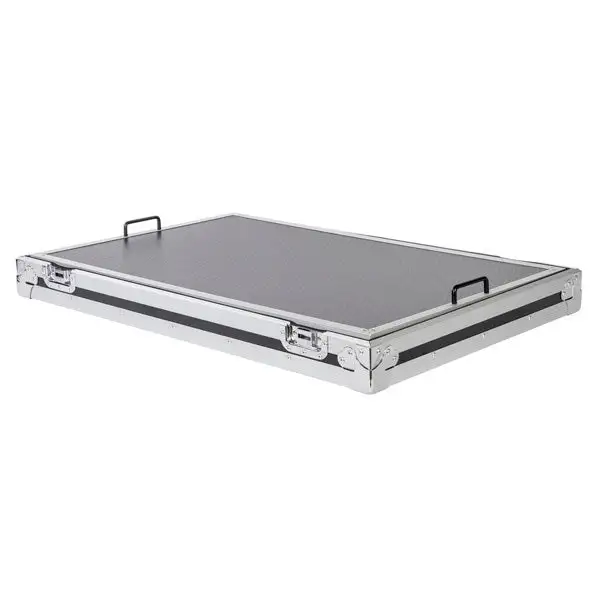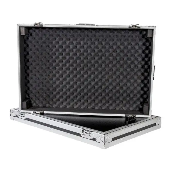This road case is perfect for musicians who need their equipment portable and protected. This touring grade pedal board case is constructed from 9mm plywood with aluminium edging, recessed wheels, recessed hands and lockable butterfly latches. The pedal board is ideal for transporting 14-25 pedals, switchers, cables and accessories. The board can be removed to uncover a padded storage compartment perfect for power packs, cables strings and most other accessories likewise the pedal board can be used in the case thanks to the unique design of the removable lid. Case comes heavy padded with EVA impact foam, small storage compartment, removable lid that is lined with egg crate foam, wheels and removable pedal board.
