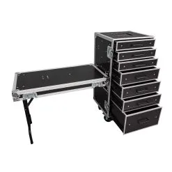 - 1 x Road Case 7 drawer workstation on wheels with side table