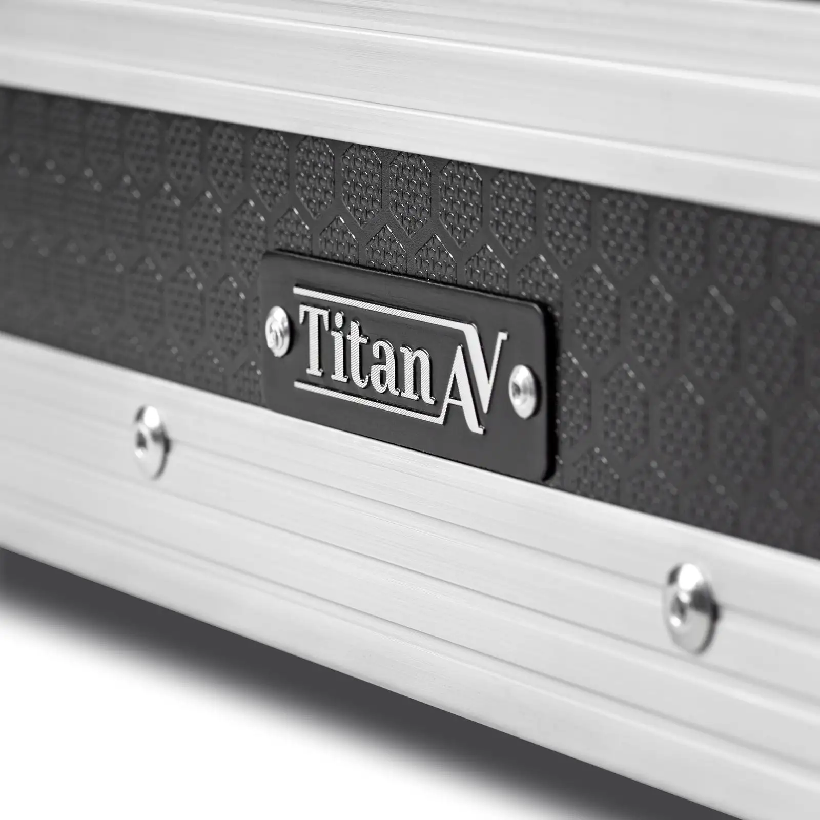 Titan AV road cases feature Hexa Laminate 9mm plywood, high quality 1.6mm thick Aluminium joiner extrusion and chrome dipped steel corners and braces.